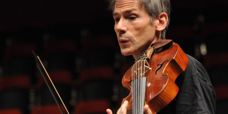 More recently thanks to his interest in the viola d’amore and the medieval fiddle, his repertoire has opened up to the music of the past (medieval, baroque) which he persuasively brings into the present. His Irish roots enable him to dialogue with traditional music without complexes. A natural improviser, and an intuitive composer, his music often has elements of innovative instrumental theatre.